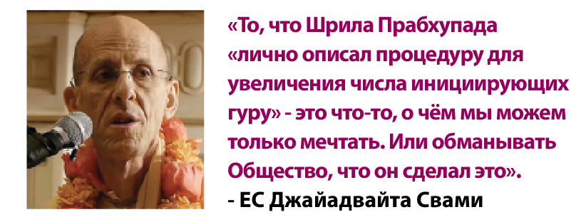 «То, что Шрила Прабхупада «лично описал процедуру для увеличения числа инициирующих гуру» – это что-то, о чём мы можем только мечтать. Или обманывать Общество, что он сделал это».