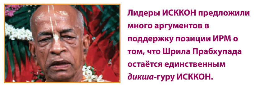Лидеры ИСККОН предложили много аргументов, которые лишают смысла возможные вызовы позиции ИРМ.