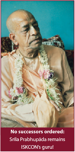 There is a great irony in this proposal. Srila Prabhupada's physical absence is normally used as the very reason for why guru succession needs to occur in the first place, due to the guru needing to be "living" so that pariksa (mutual examination between guru and disciple), and pariprasna (inquiry from the disciple), can take place. But, amazingly, when Srila Prabhupada is required to give guru succession orders, his physical absence magically becomes no impediment at all! Clearly, if Srila Prabhupada is deemed able to communicate personal orders in his physical absence, there is also no bar to him performing all the functions of diksa -- thus eliminating the reason put forward for why we need a successor diksa guru!